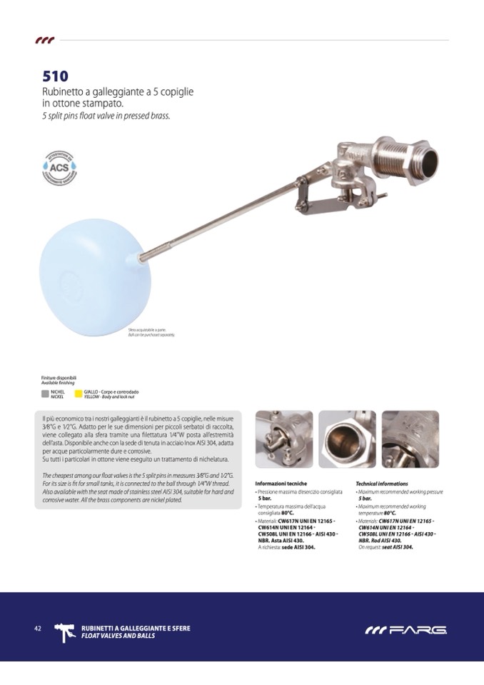 float valves is the 5 split pins in measures 3⁄8"G and 1⁄2"G.