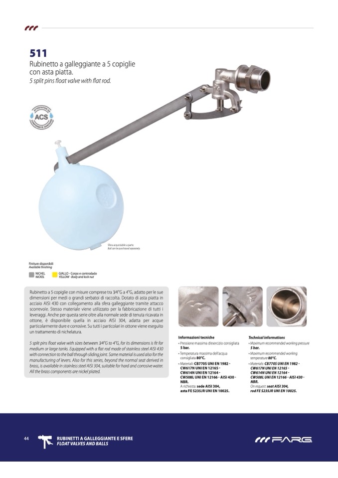 acciaio AISI 430 con collegamento alla sfera galleggiante tramite attacco