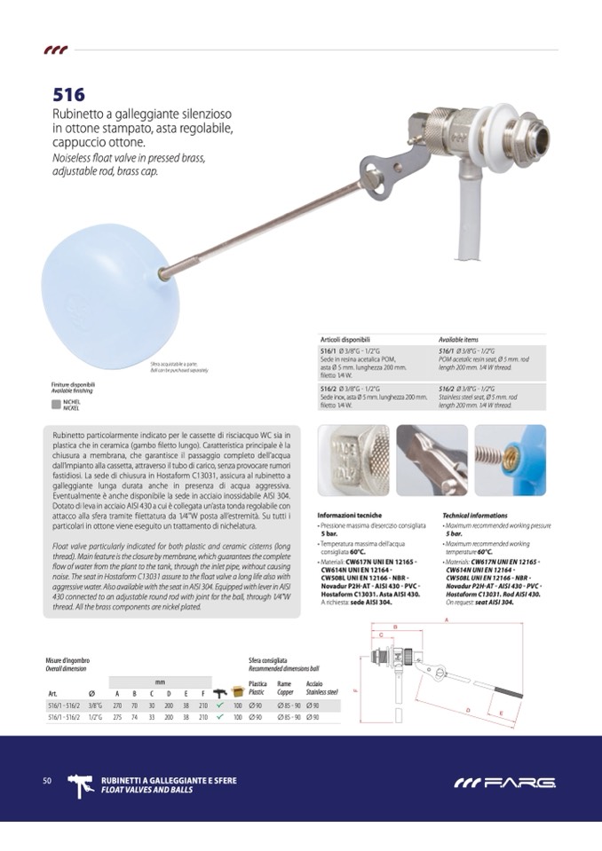 FLOAT VALVES ANd BALLS