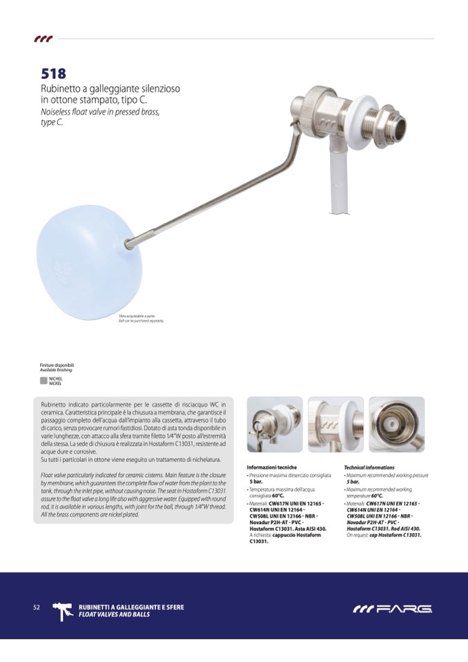 assure to the float valve a long life also with aggressive water. Equipped with round
