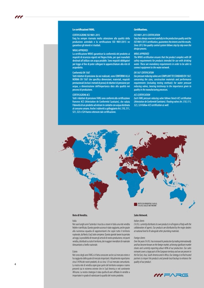 F.A.R.G. currently distributes its own products in all regions of Italy with the