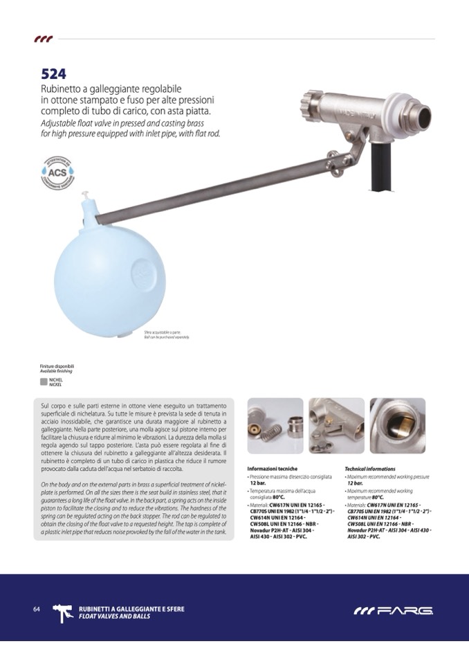 ottenere la chiusura del rubinetto a galleggiante all’altezza desiderata. Il