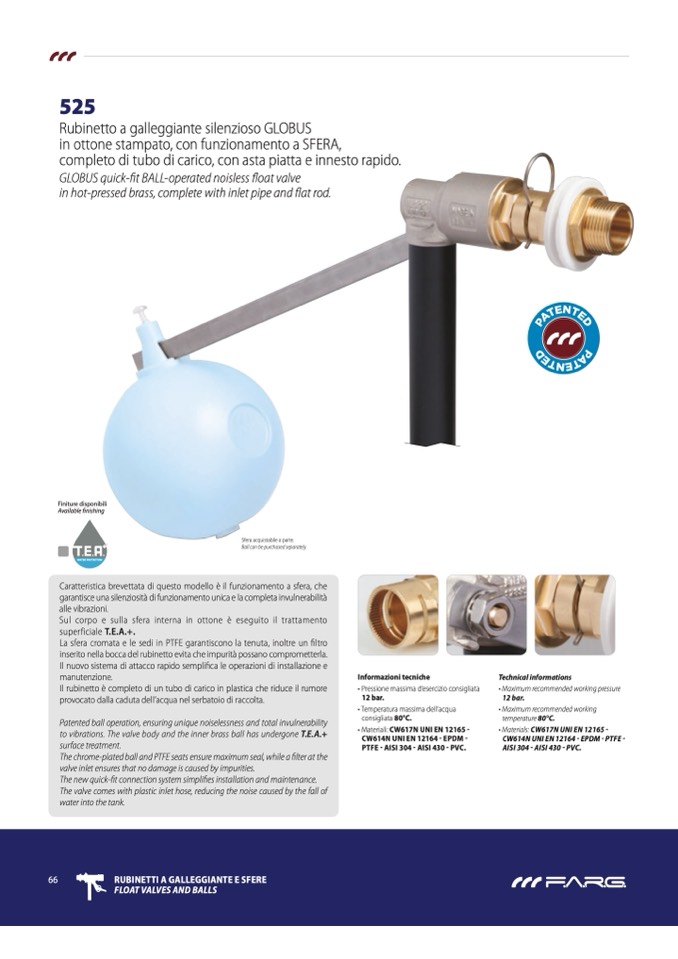 La sfera cromata e le sedi in PTFE garantiscono la tenuta, inoltre un filtro