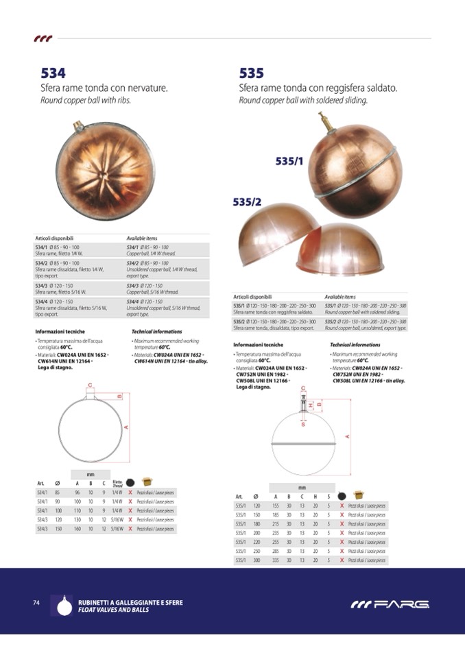 FLOAT VALVES ANd BALLS