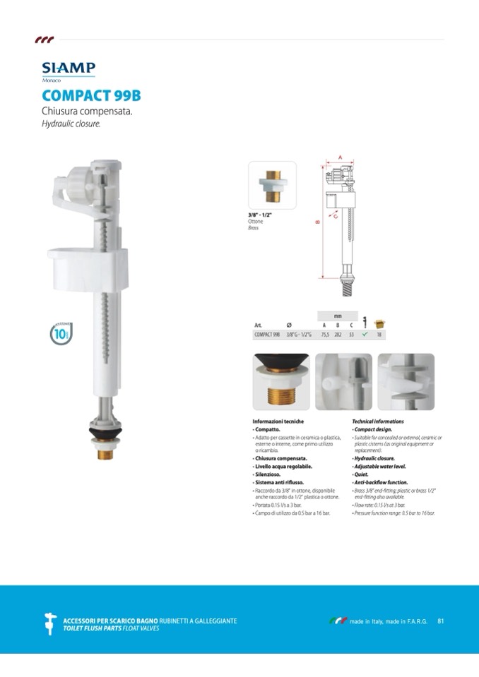 ACCESSORI pER SCARICO BAGNO RUBINETTI A GALLEGGIANTE