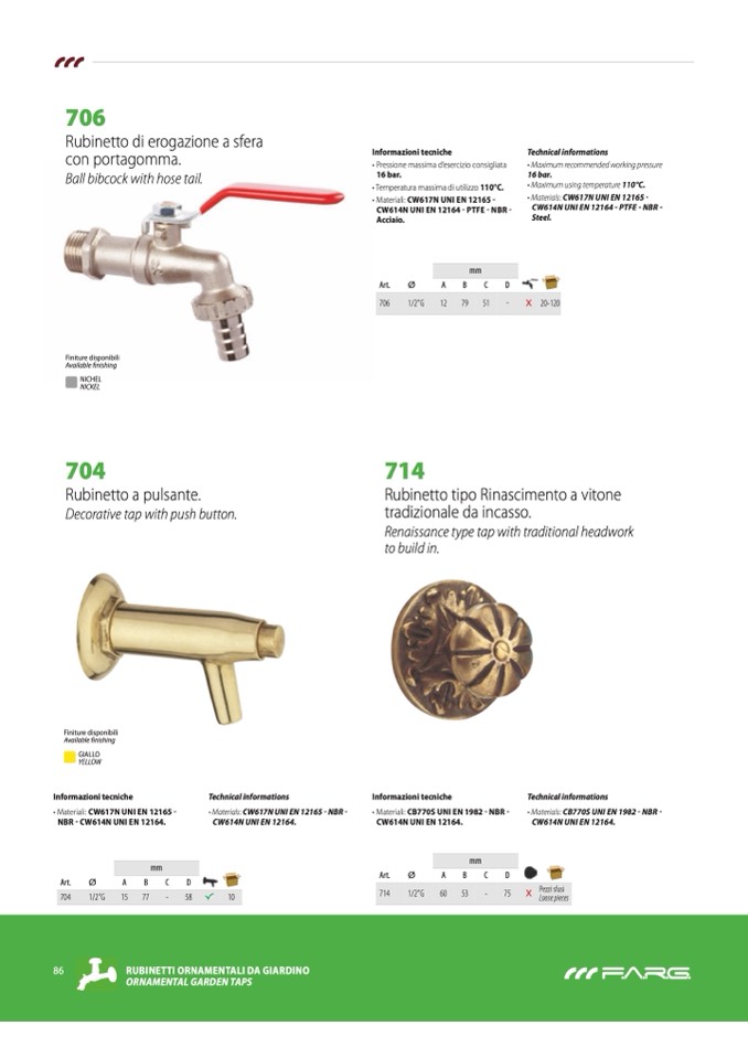 • Materials: CW617N UNI EN 12165 -
