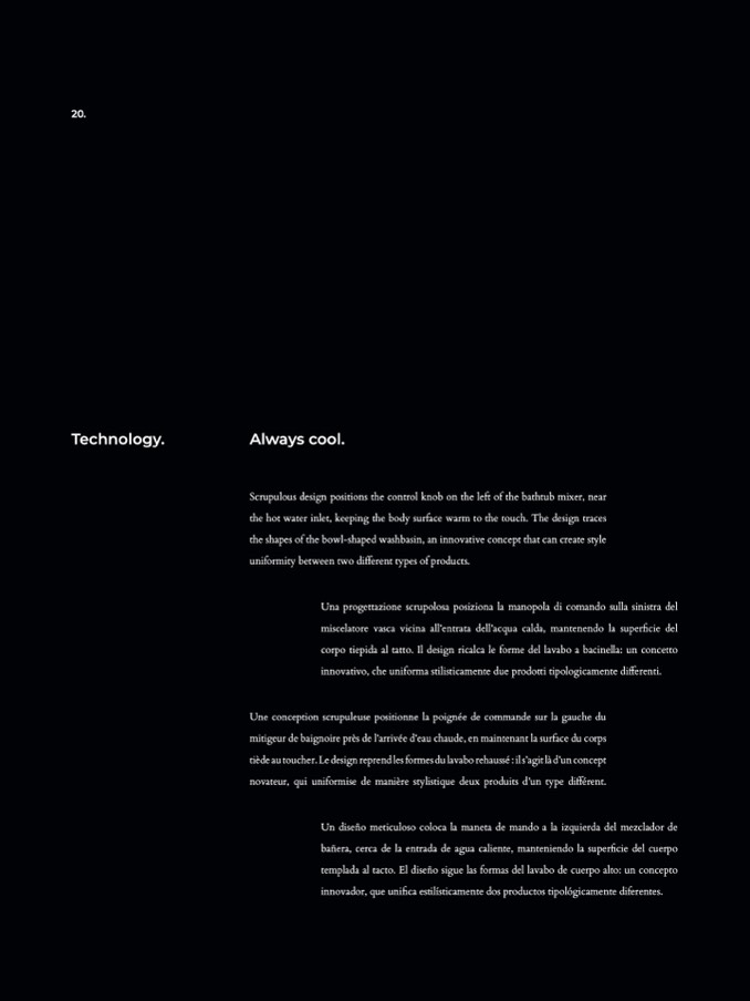 corpo tiepida al tatto. Il design ricalca le forme del lavabo a bacinella: un concetto