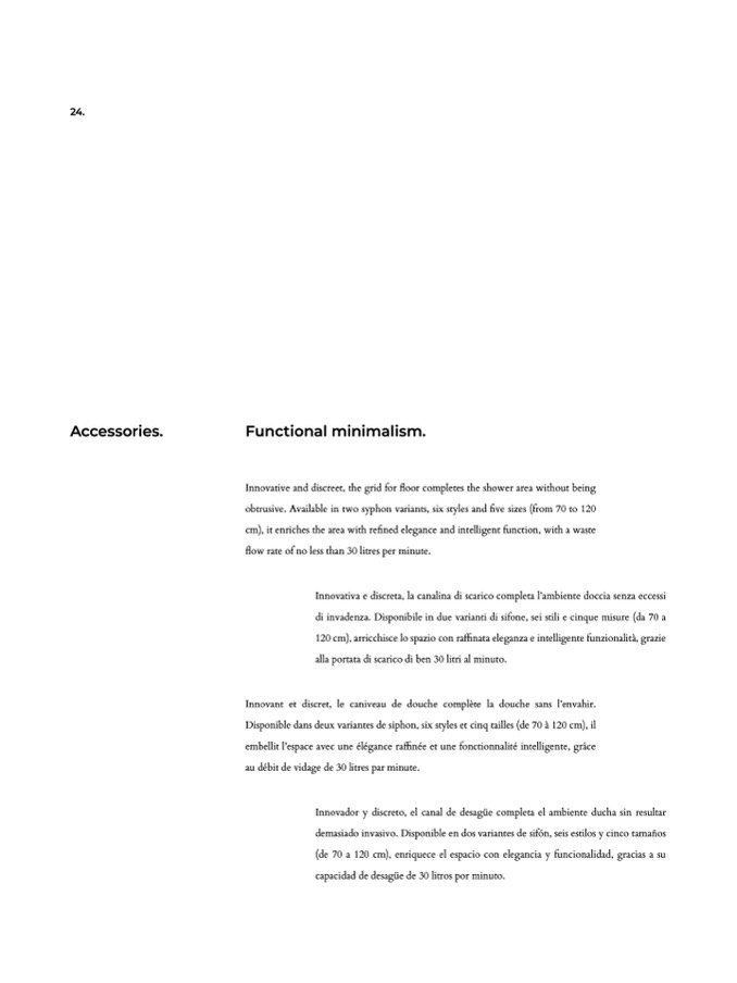 di invadenza. Disponibile in due varianti di sifone, sei stili e cinque misure (da 70 a