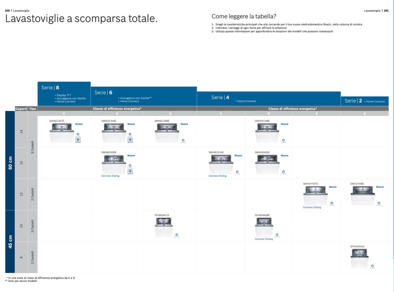 1. Scegli le caratteristiche principali che stai cercando per il tuo nuovo elettrodomestico Bosch, nella colonna di sinistra