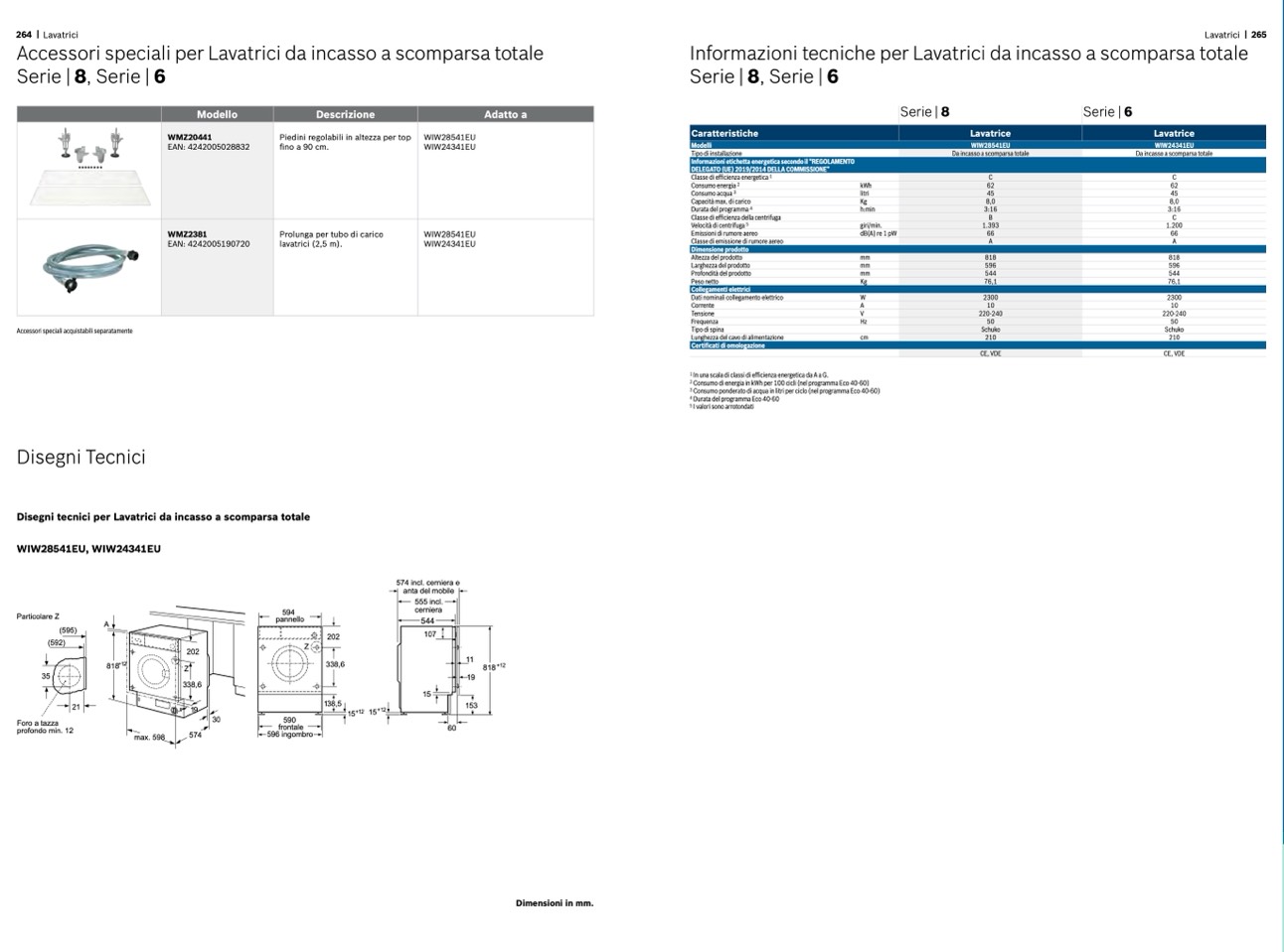 Disegni tecnici per Lavatrici da incasso a scomparsa totale