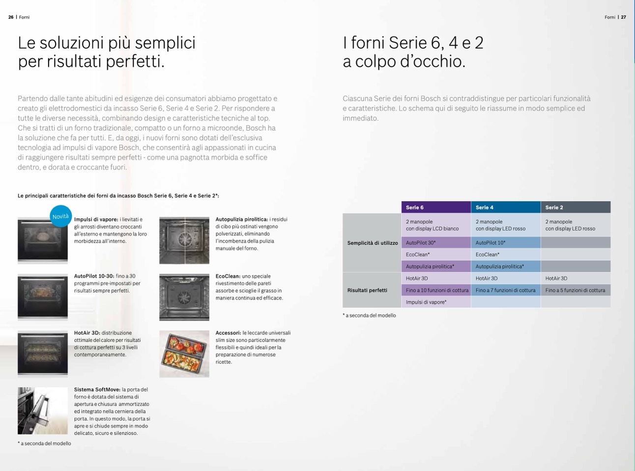 Le principali caratteristiche dei forni da incasso Bosch Serie 6, Serie 4 e Serie 2*:
