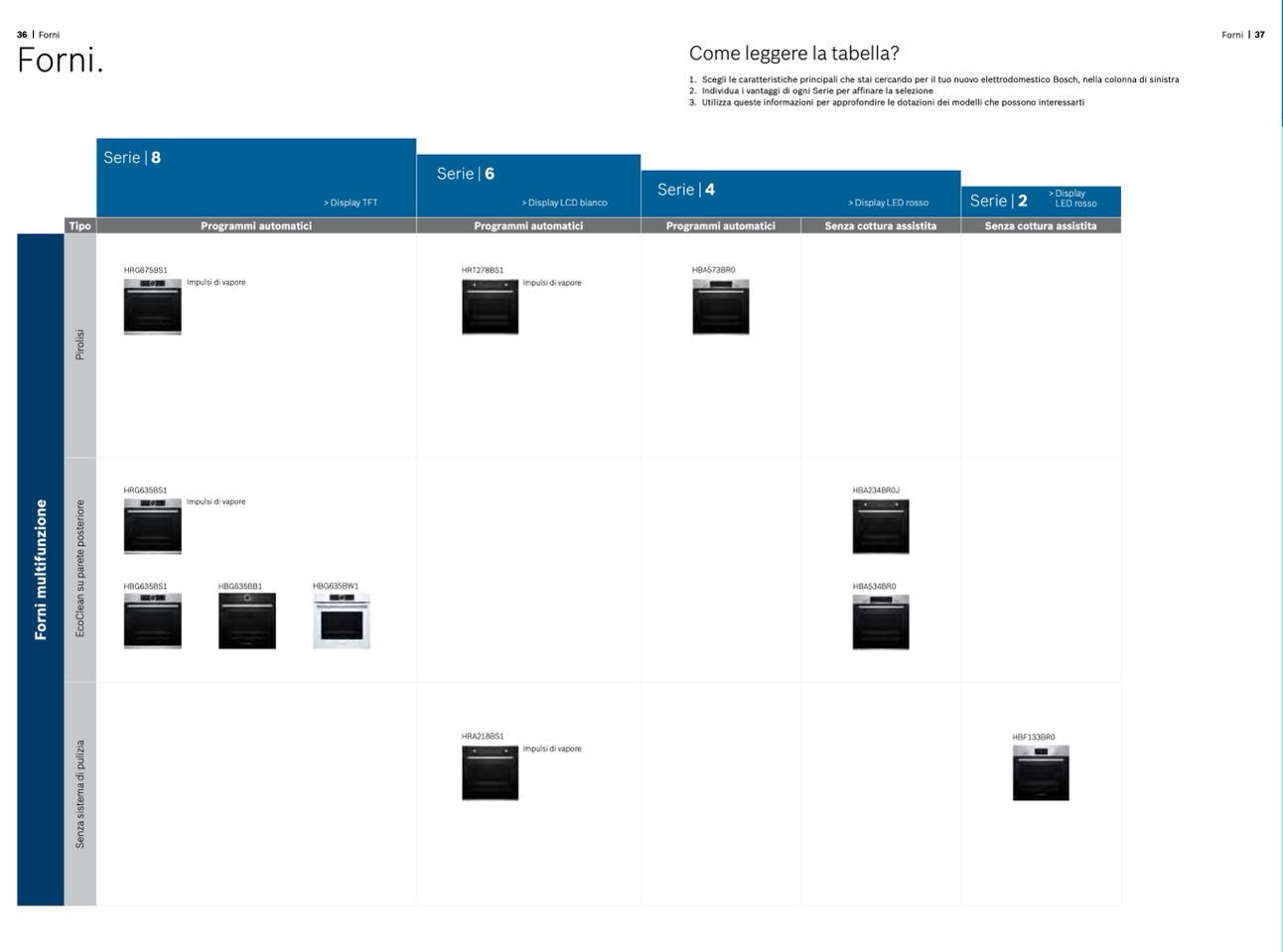 1. Scegli le caratteristiche principali che stai cercando per il tuo nuovo elettrodomestico Bosch, nella colonna di sinistra
