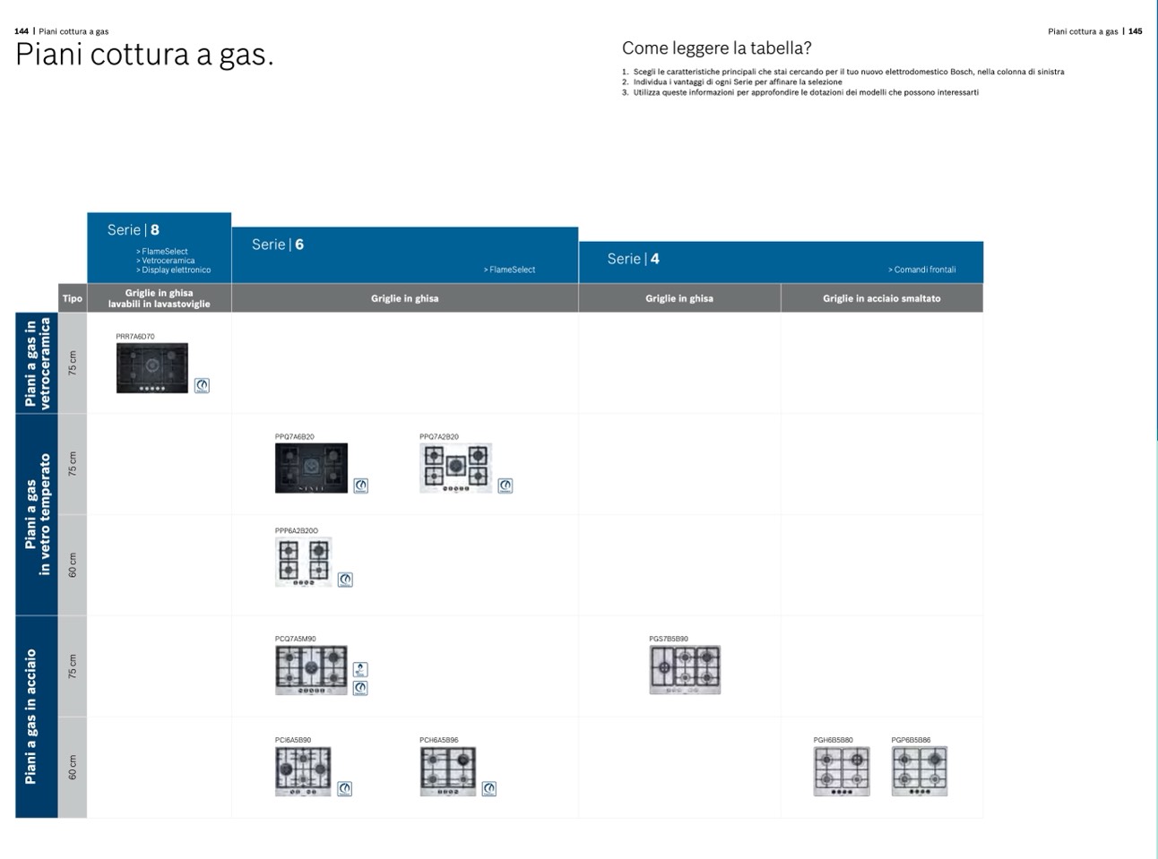 1. Scegli le caratteristiche principali che stai cercando per il tuo nuovo elettrodomestico Bosch, nella colonna di sinistra