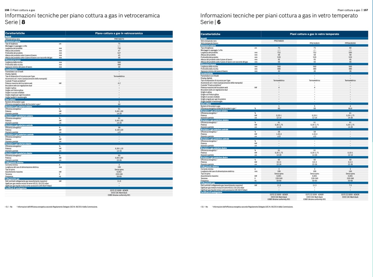 Informazioni dell'efficienza energetica secondo Regolamento Delegato (UE) N. 66/2014 della Commissione.