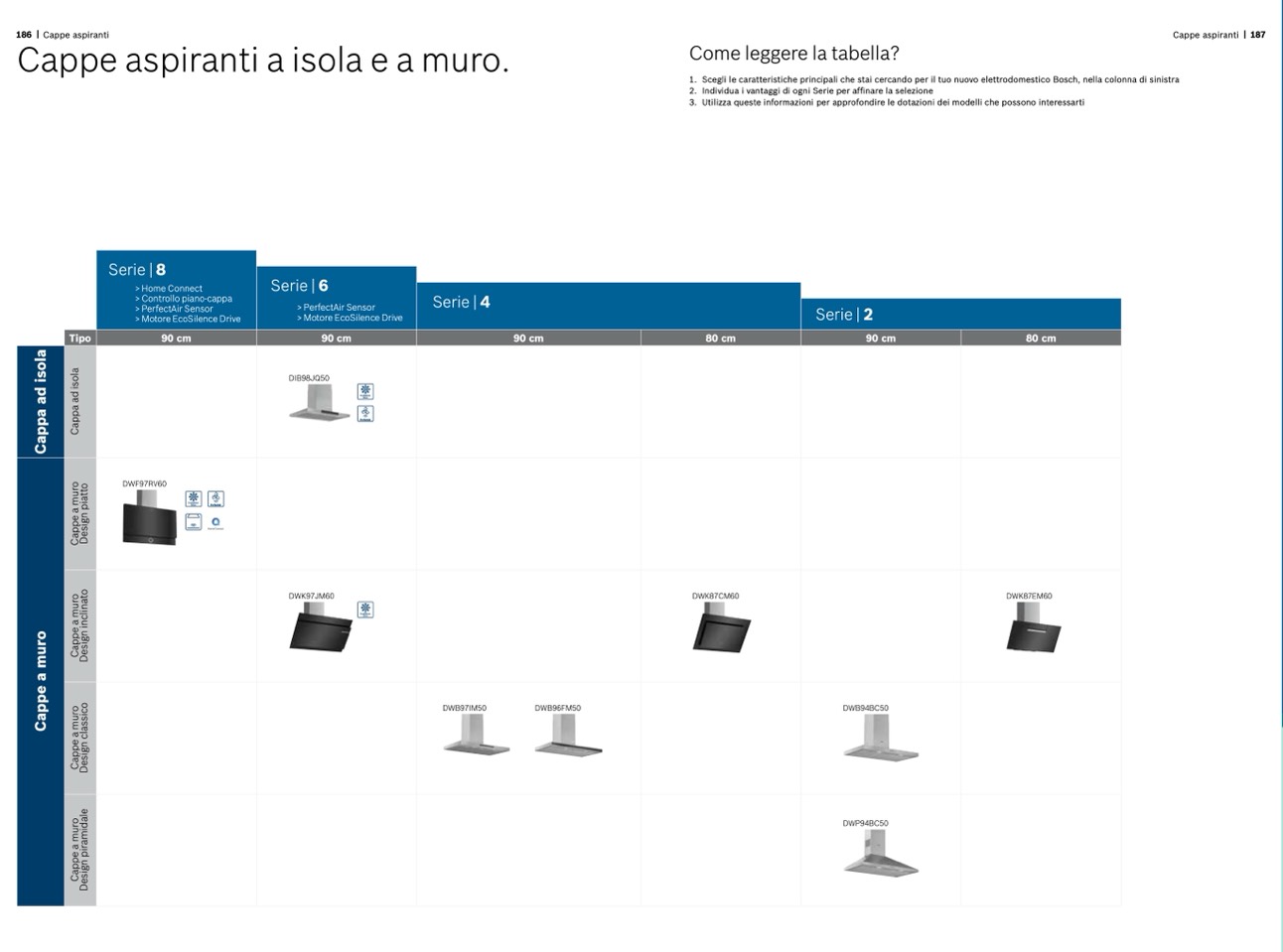 1. Scegli le caratteristiche principali che stai cercando per il tuo nuovo elettrodomestico Bosch, nella colonna di sinistra