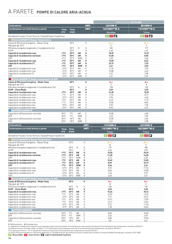(1) La potenza termica a -7°C è indicata alla massima frequenza di funzionamento del compressore secondo EN14511.