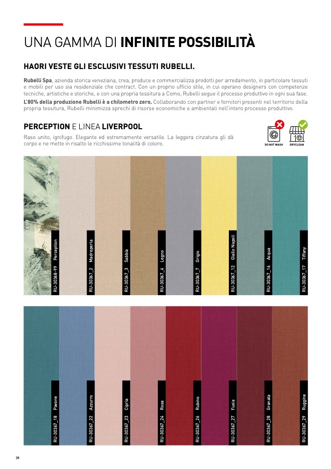 Raso unito, ignifugo. Elegante ed estremamente versatile. La leggera cinzatura gli d