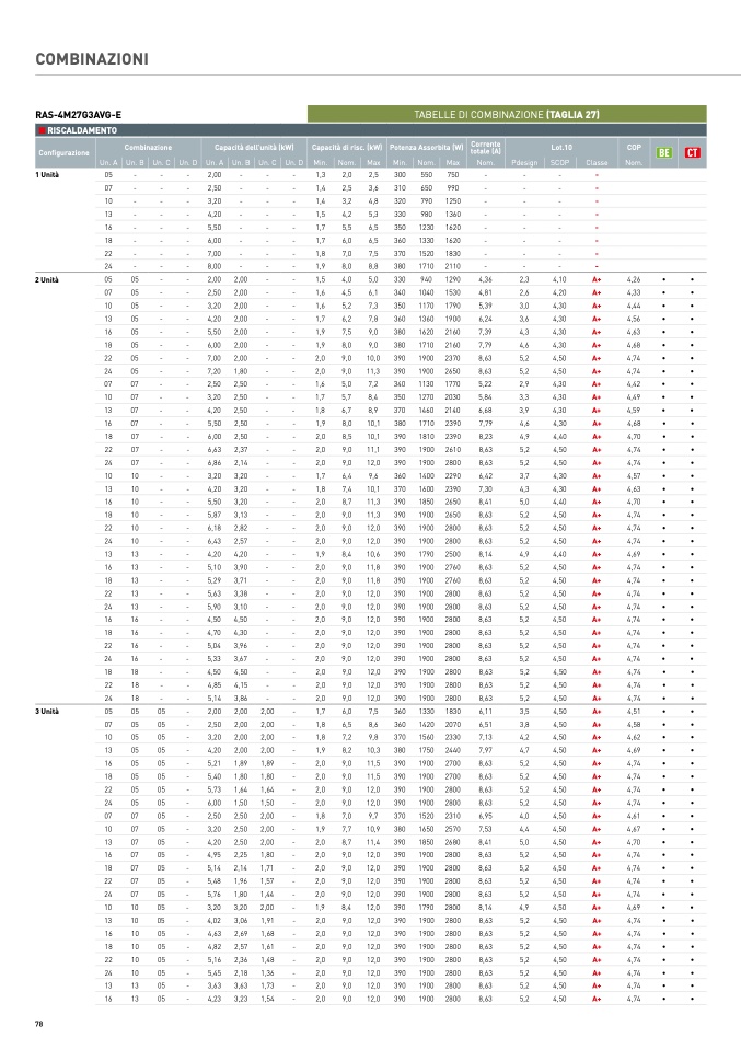 TABELLE DI COMBINAZIONE (TAGLIA 27