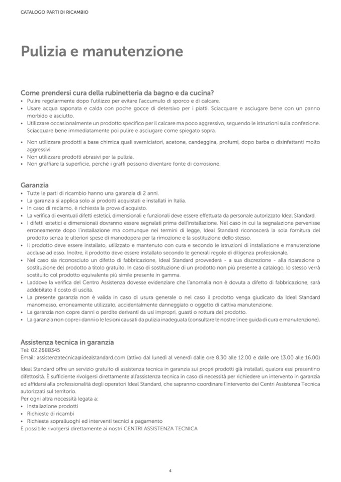 Email: assistenzatecnica@idealstandard.com (attivo dal lunedì al venerdì dalle ore 8.30 alle 12.00 e dalle ore 13.00 alle 16.00)