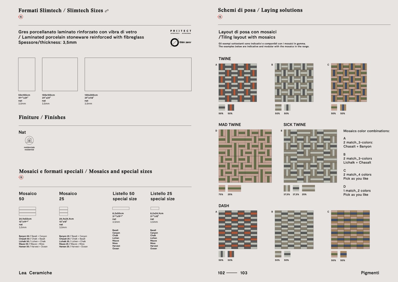 Gli esempi sottostanti sono indicativi e componibli con i mosaici in gamma.