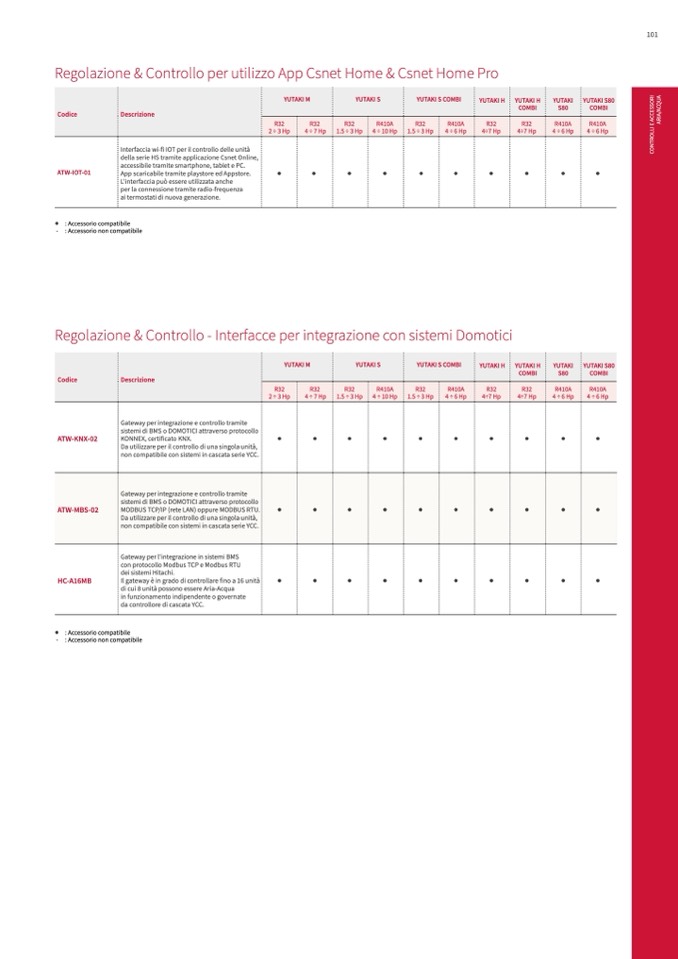 ● : Accessorio compatibile