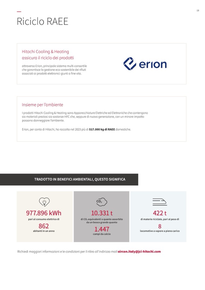Richiedi maggiori informazioni e le condizioni per il ritiro all'indirizzo mail aircon.italy@jci-hitachi.com