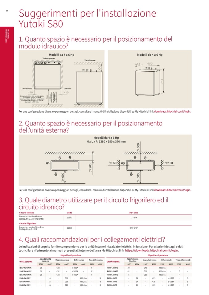 tecnici fare riferimento ai manuali presenti all'interno dell'area My Hitachi al link https://downloads.hitachiaircon.it/login.