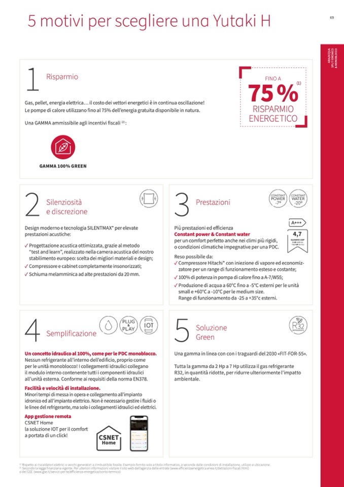 ✓ Produzione di acqua a 60°C fino a -5°C esterni per le unità