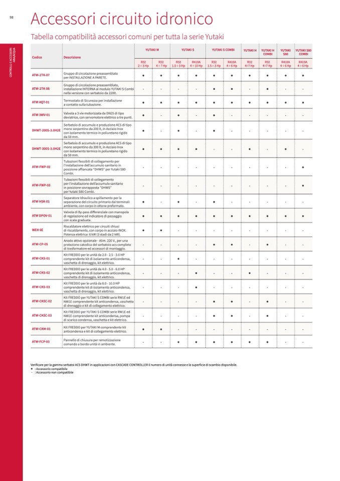 à accessori comuni per tutta la serie Yutaki
