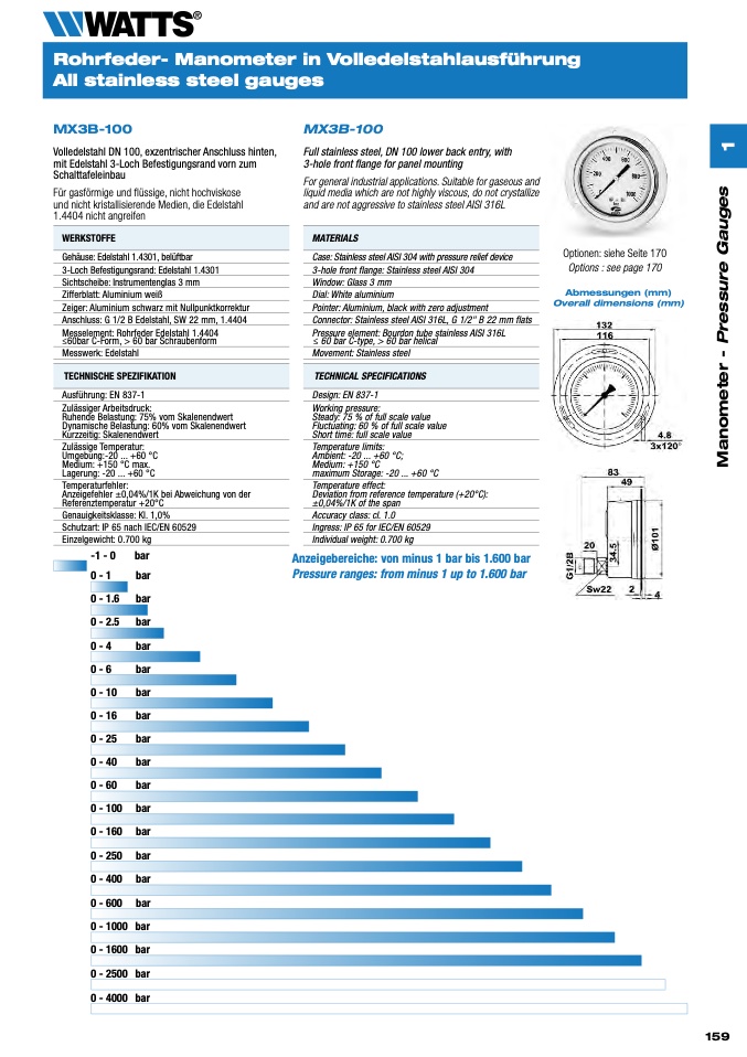 Anzeigebereiche: von minus 1 bar bis 1.600 bar