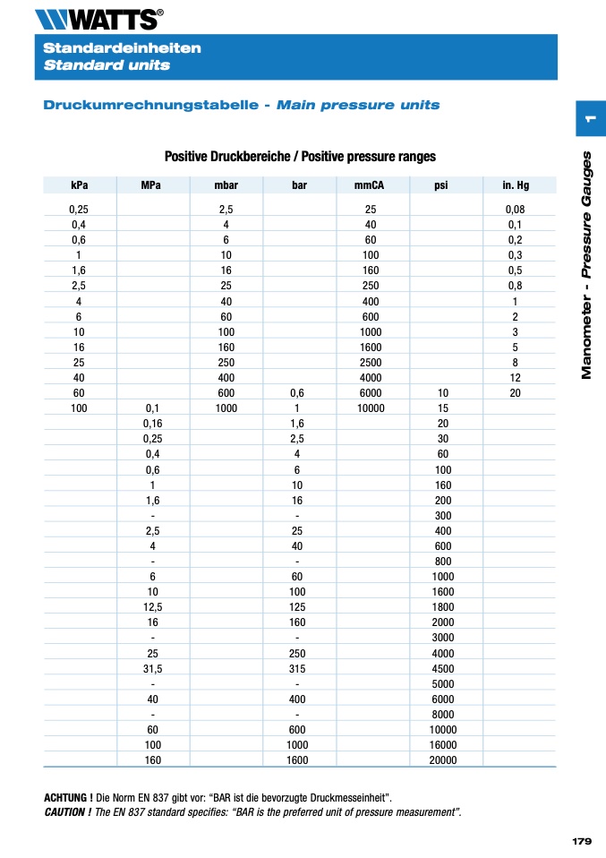 ACHTUNG ! Die Norm EN 837 gibt vor: “BAR ist die bevorzugte Druckmesseinheit”.