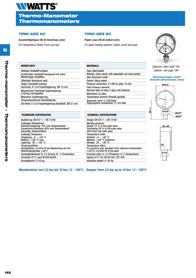 Messbereiche: von 2,5 bar bis 10 bar / 0 – 120°C - Ranges: from 2,5 bar up to 10 bar / 0 – 120°C