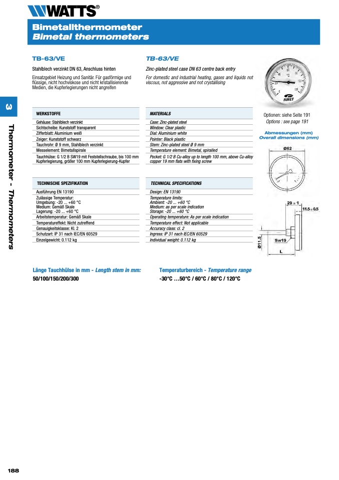 -30°C ...50°C / 60°C / 80°C / 120°C