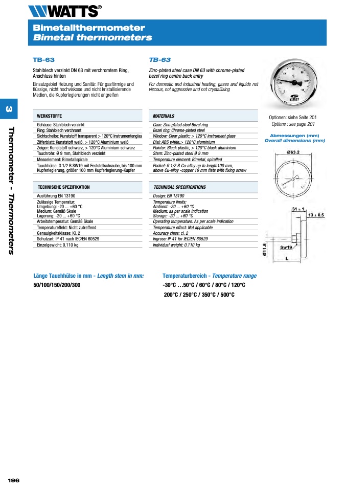 Zifferblatt: Kunststoff weiß, > 120°C Aluminium weiß
