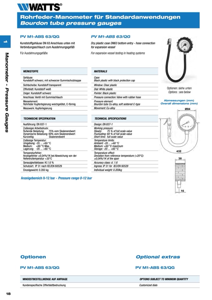 Anzeigebereich 0-12 bar - Pressure range 0-12 bar