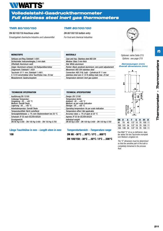 Länge Tauchhülse in mm - Length stem in mm: