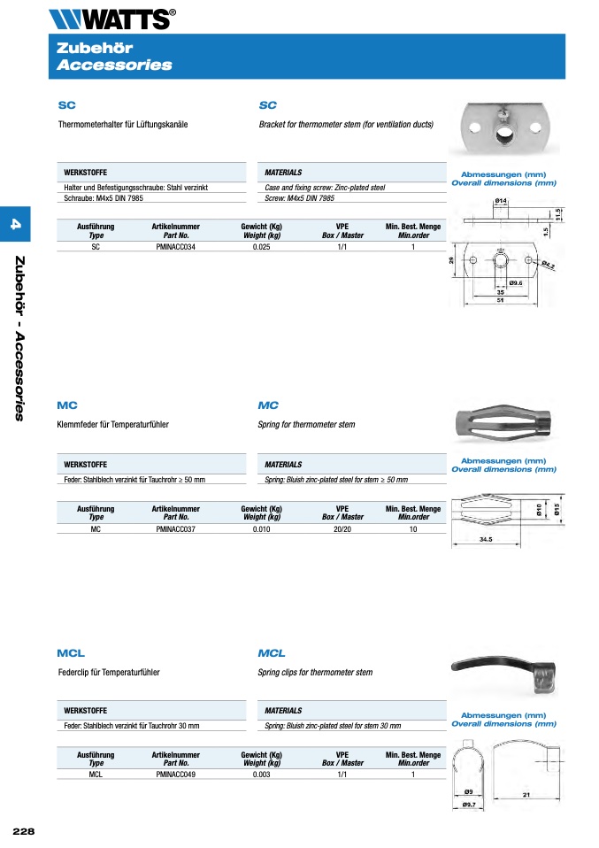 Spring: Bluish zinc-plated steel for stem ≥ 50 mm