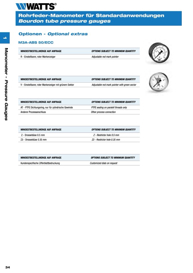V - Einstellbarer, roter Markenzeiger mit grünem Sektor