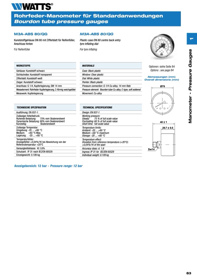 Anzeigebereich: 12 bar - Pressure range: 12 bar