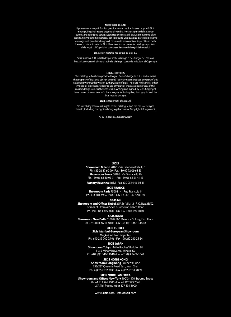 Sicis explicitly reserves all rights to this catalogue and the mosaic designs