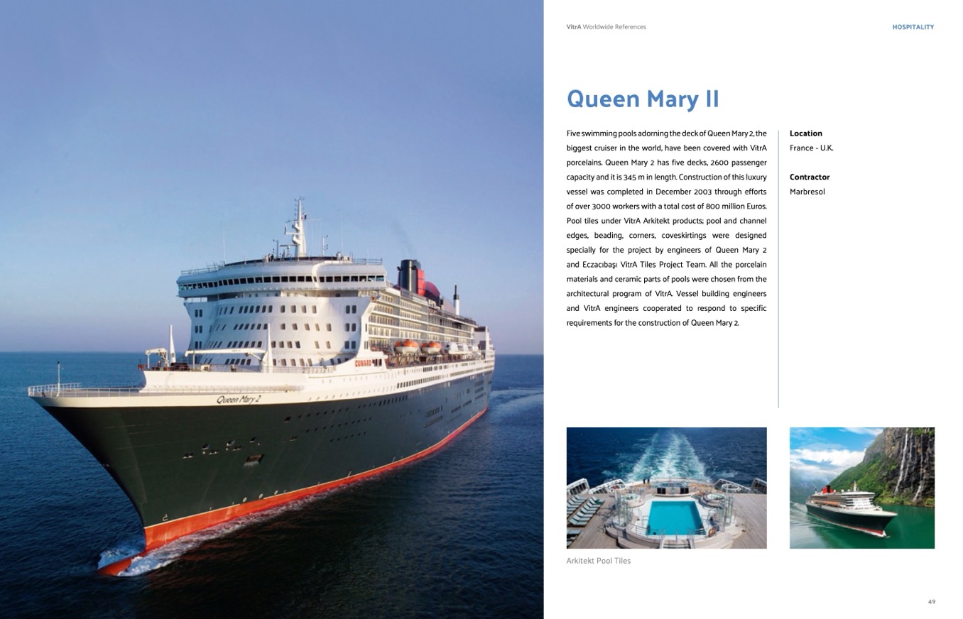 porcelains. Queen Mary 2 has five decks, 2600 passenger