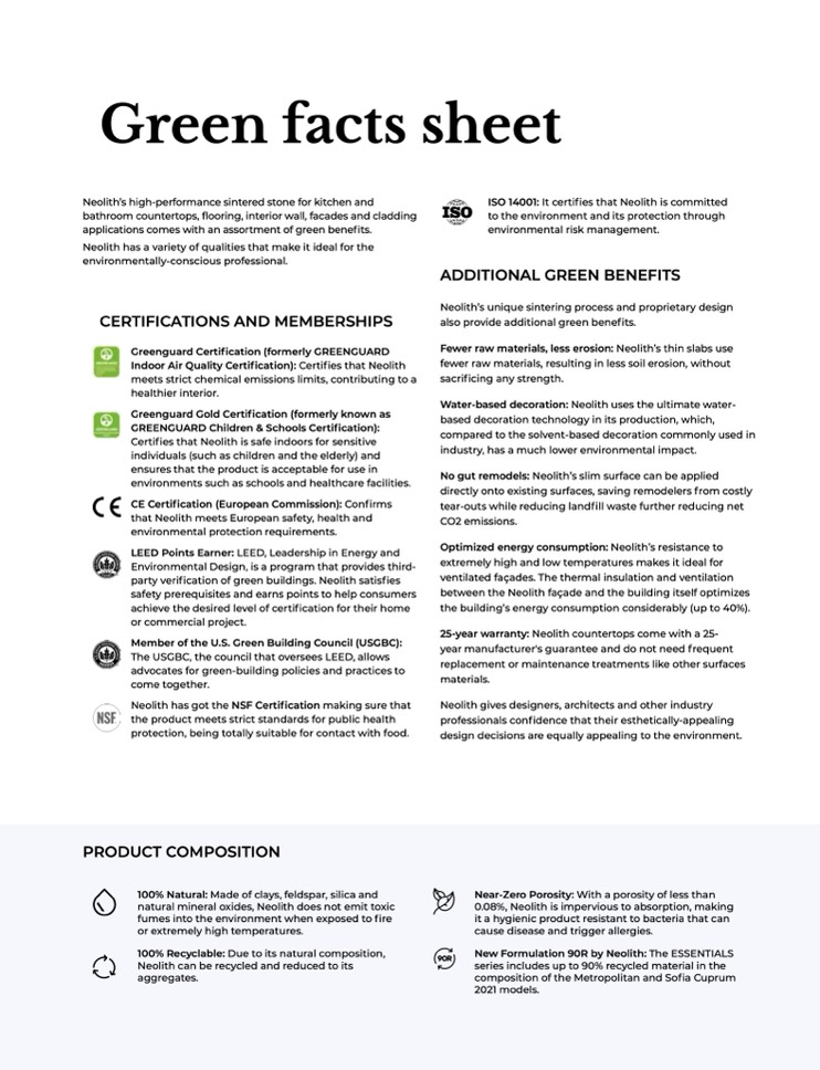 Neolith has a variety of qualities that make it ideal for the