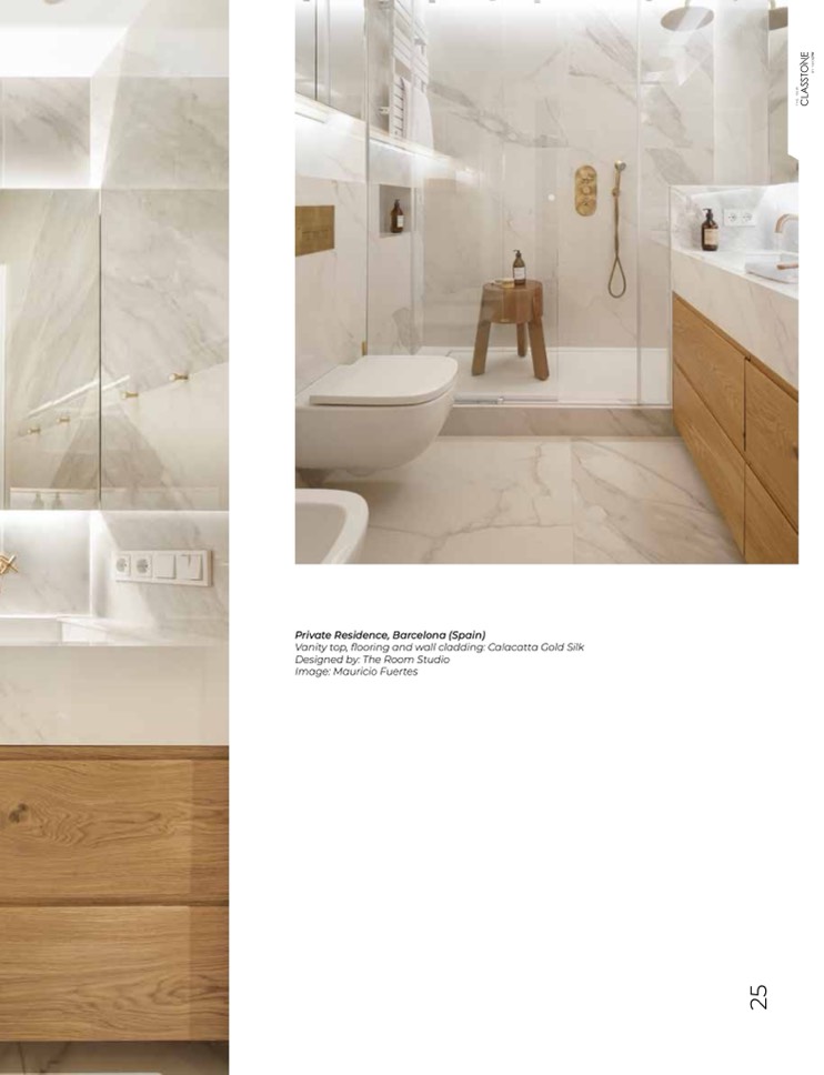 Vanity top, flooring and wall cladding: Calacatta Gold Silk
