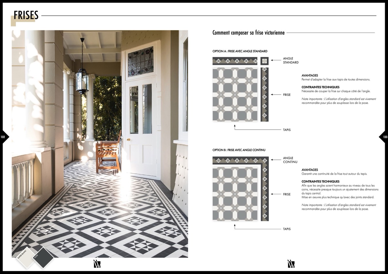Garantit une continuité de la frise tout autour du tapis.