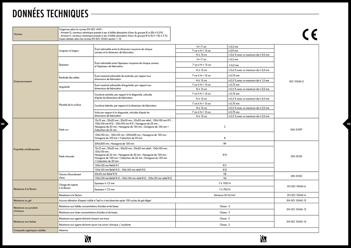 - Annexe G, carreaux céramique pressés à sec à faible absorption d’eau du groupe B1a (Eb ≤ 0,5%)
