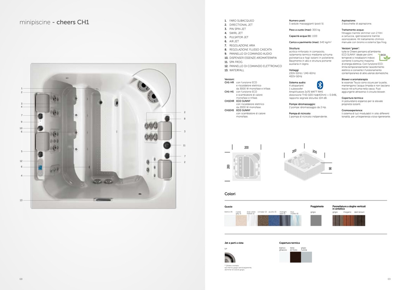 2 pompe idromassaggio da 2 Hp.