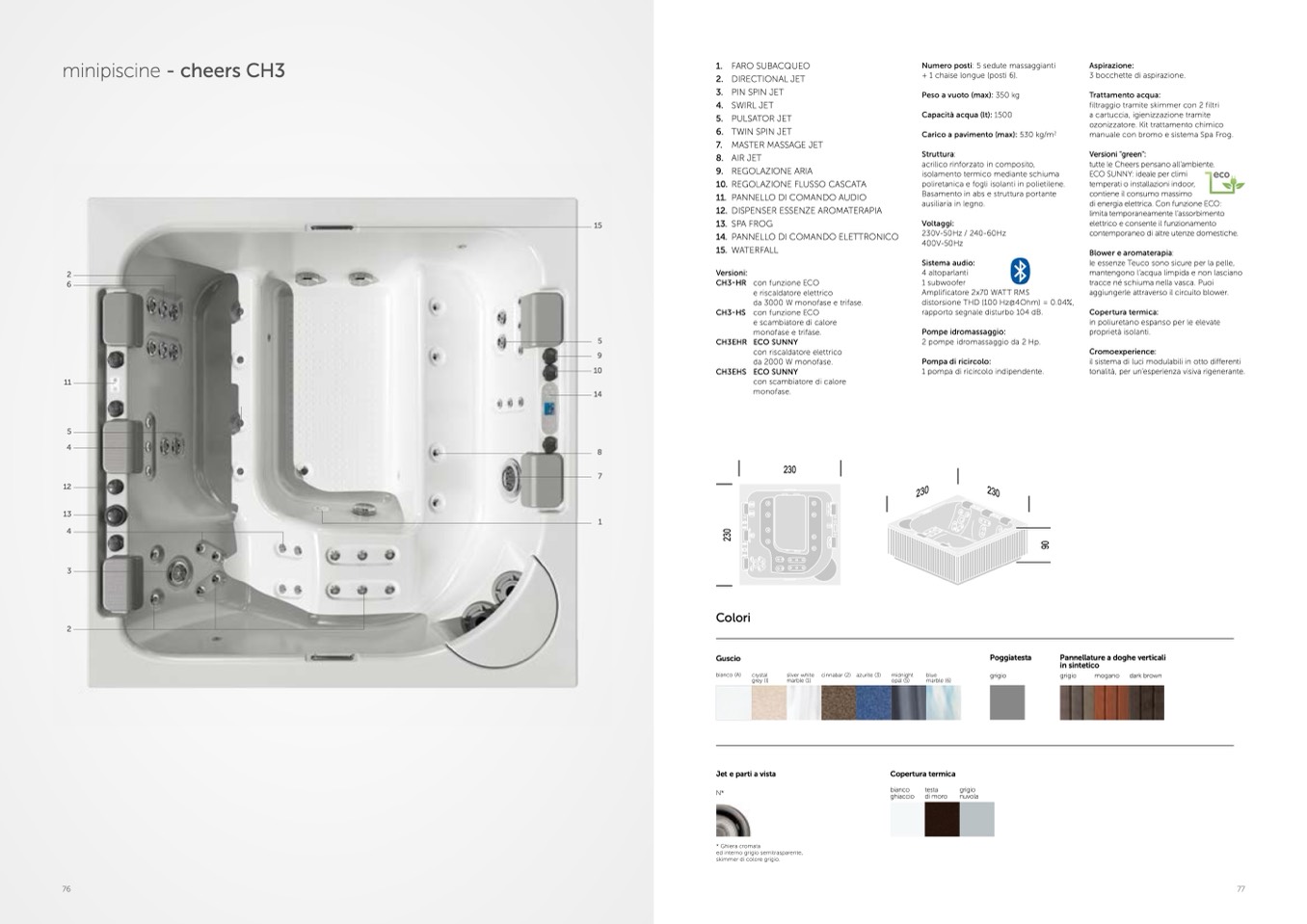 2 pompe idromassaggio da 2 Hp.