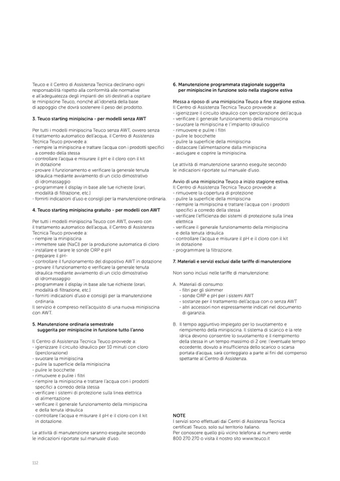 Teuco e il Centro di Assistenza Tecnica declinano ogni