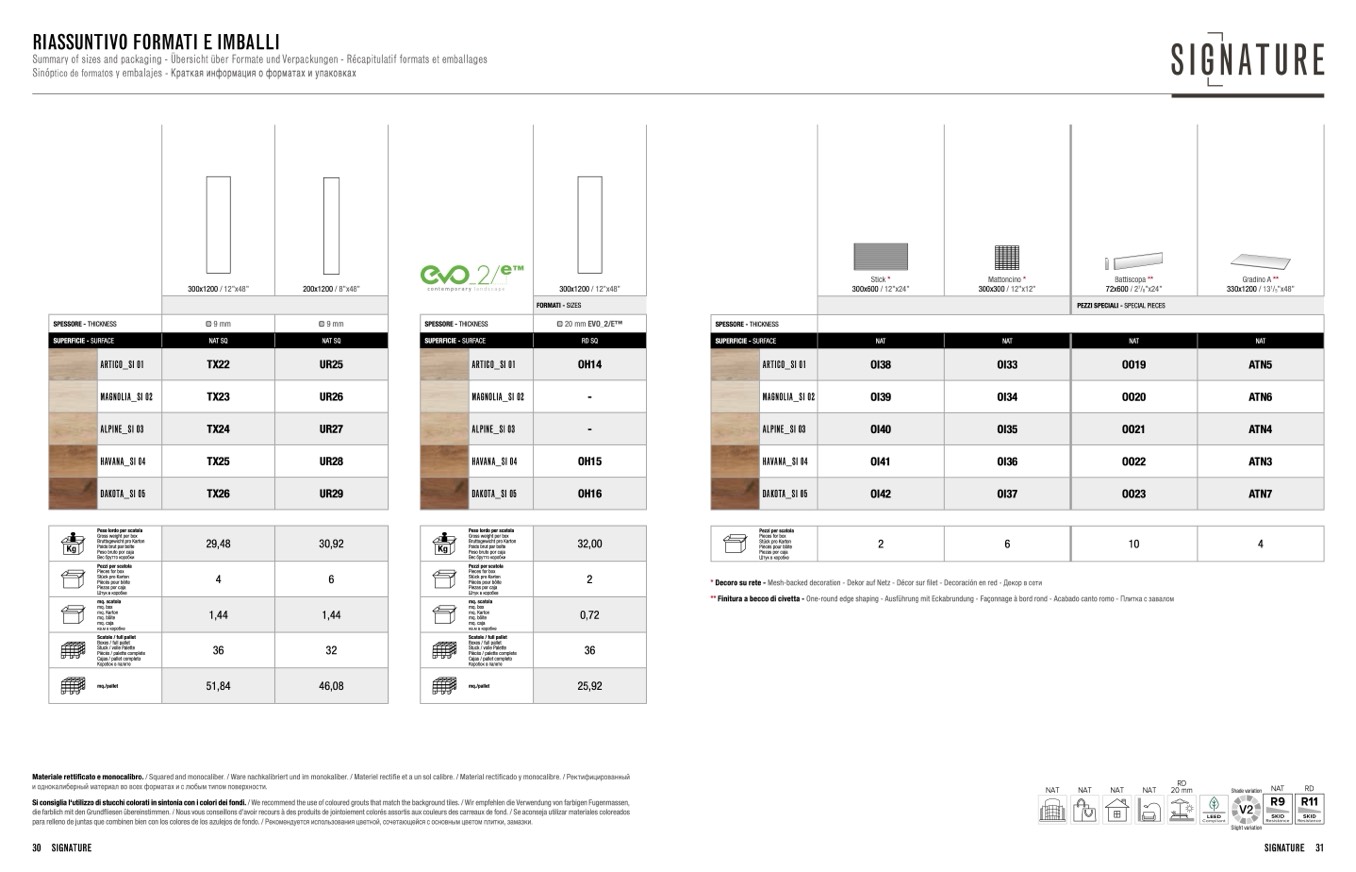 ** Finitura a becco di civetta - One-round edge shaping - Ausführung mit Eckabrundung - Façonnage à bord rond - Acabado canto romo - Плитка с завалом