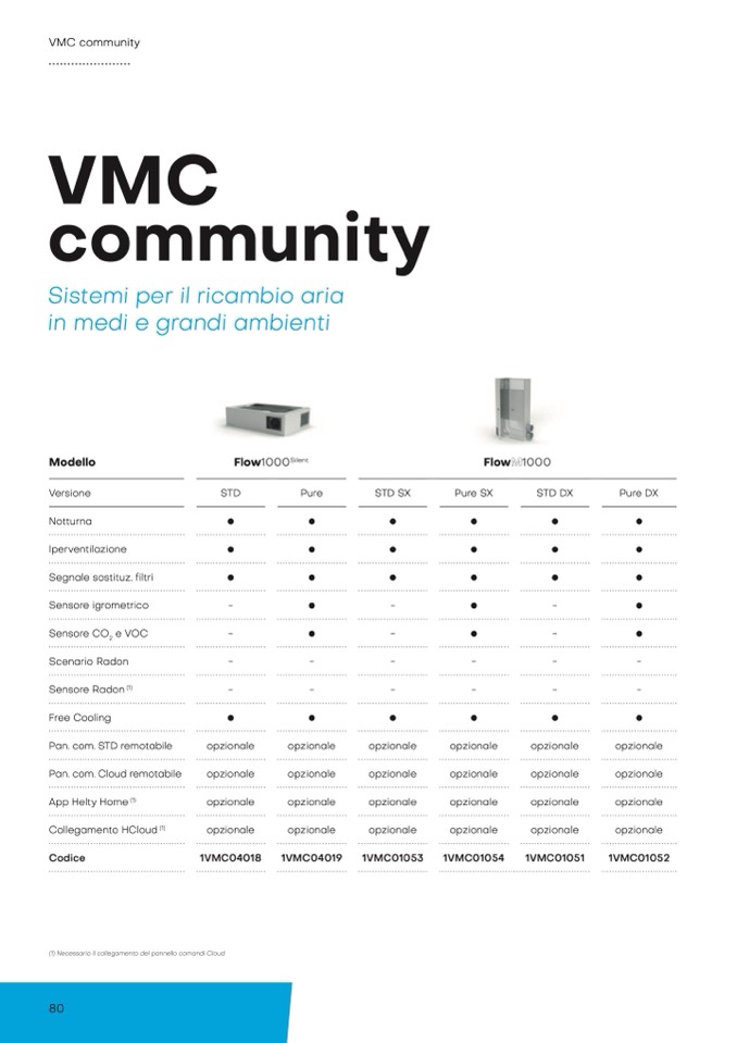 (1) Necessario il collegamento del pannello comandi Cloud